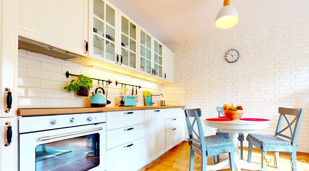 – aneks kuchenny, znakomita zabudowa, sprzęt AGD (płyta grzewcza, lodówka, piekarnik, zmywarka), akcesoria kuchenne, czajnik, toster