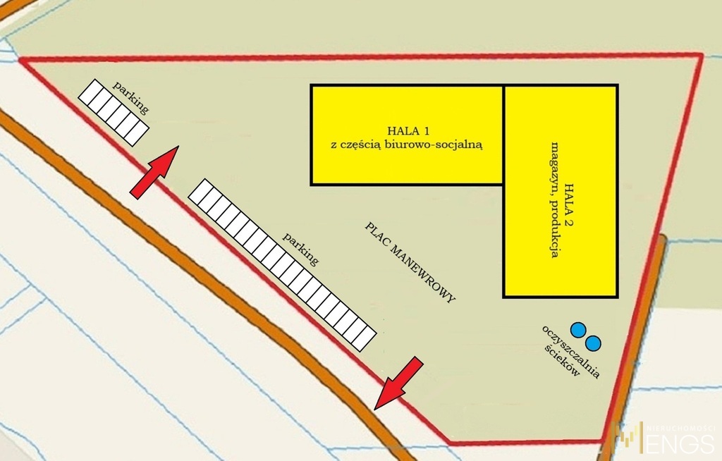 - wjazd na teren nieruchomości z drogi lokalnej / technicznej pokrytej asfaltem